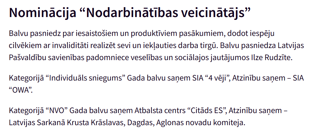 Balva saņemta nominācijā “Nodarbinātības veicinātājs”